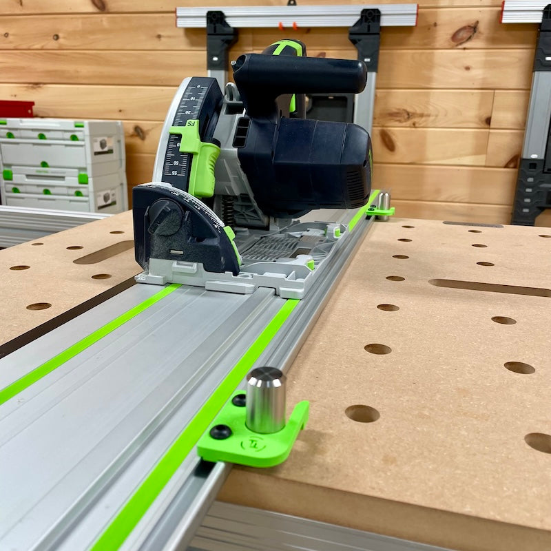 Available in green, red, & blue to match the most popular brands of Track Saws.