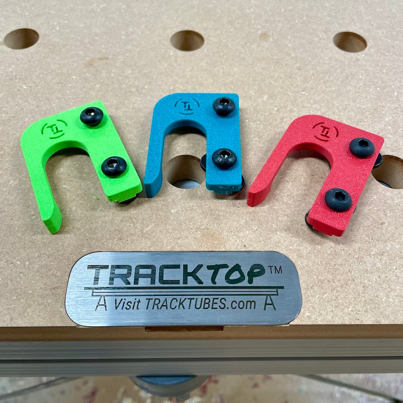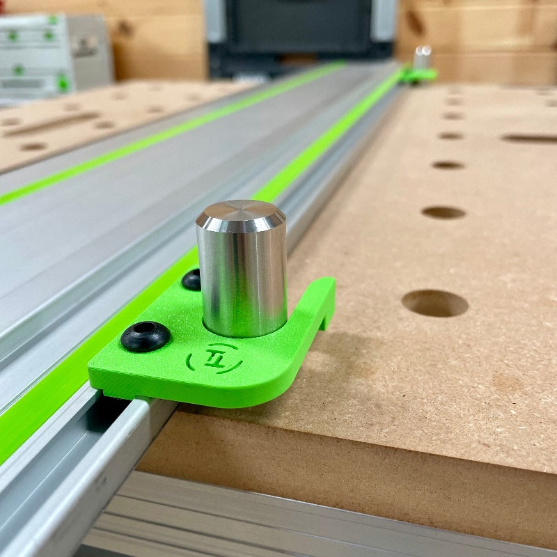 These clips secure your track saw guide rail to our Quarter Turn RAILDOGS™ for accurate cut. These 3D printed include all the necessary hardware to secure to your existing guide rail.