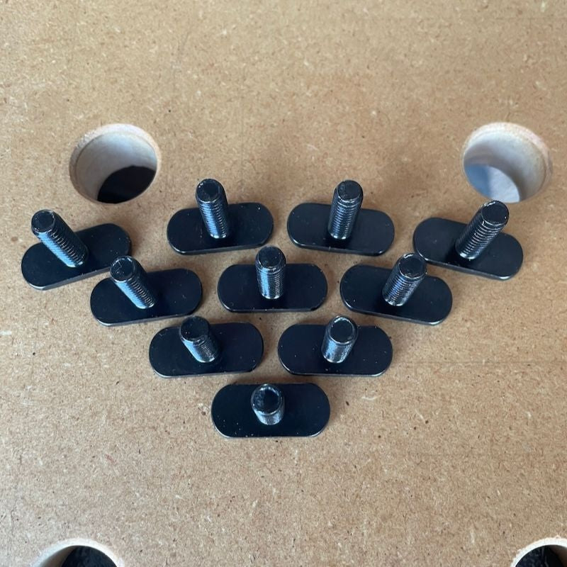 T-Bolts are designed and manufactured by us to be a perfect fit in our TRACKTUBES™ t-track, but they will also fit in many other t-tracks available that accept 1/4"-20 t-bolts. When used with jigs and other accessories, the t-bolt slides smoothly and tightens securely. Available in packs of 10, 25 and 50. Make sure you select the correct quantity. Made of carbon steel with black oxide surface treatment.