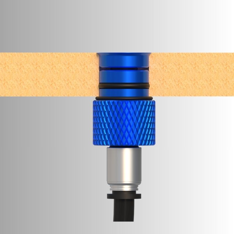 Turn your TRACKTOP MFT™ into a vacuum table. Introducing the all new VACUDOG™. An innovative "Patent Pending" bench dog, designed so you can easily add vacuum clamping to your TRACKTOP MFT™. The VACUDOG™ fits in any 3/4" (19mm) thick top with chamfered 20mm bench dog holes. This includes our TRACKTOP MFT™ and many other MFT tops and Workbenches. No holes .. no problem. Just drill a 20mm hole in your workbench and chamfer the top edge. Please watch the video before ordering.